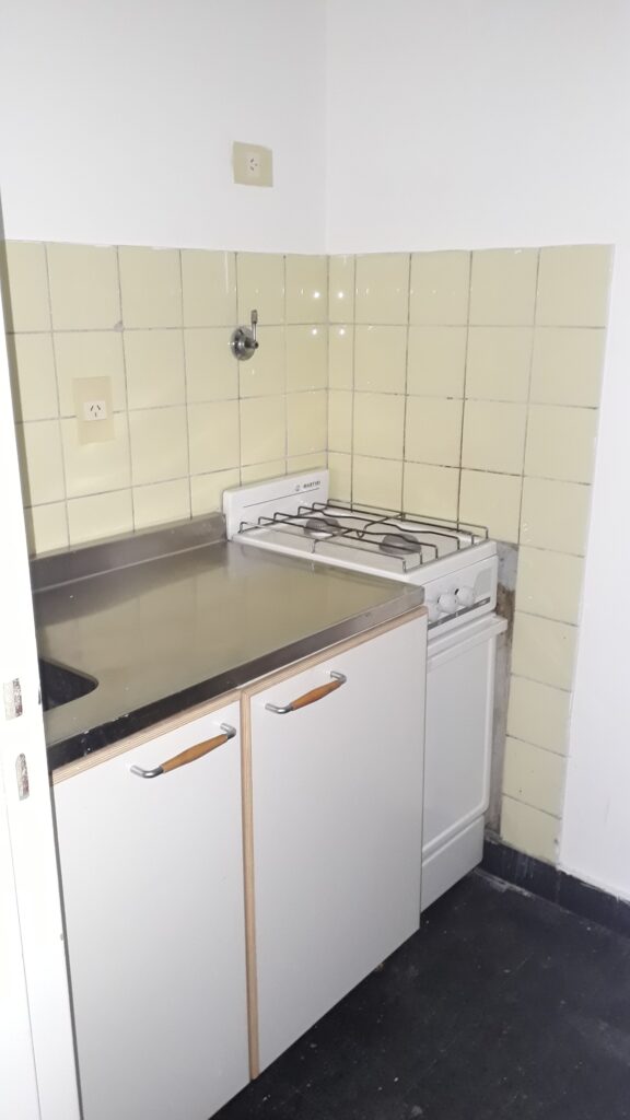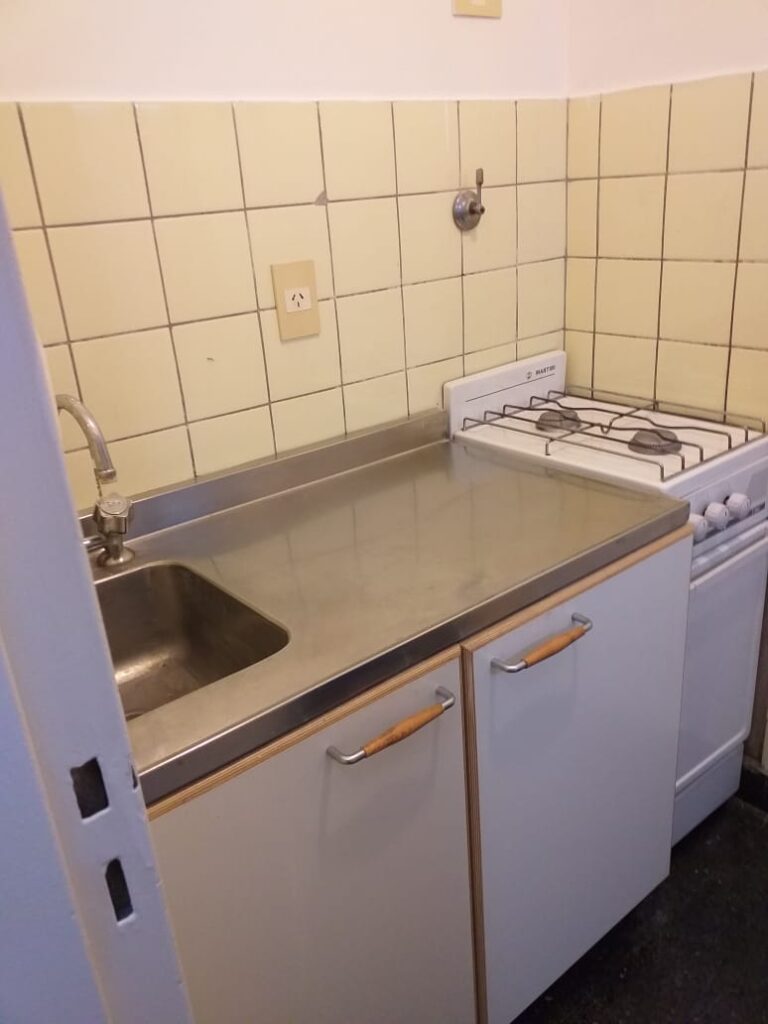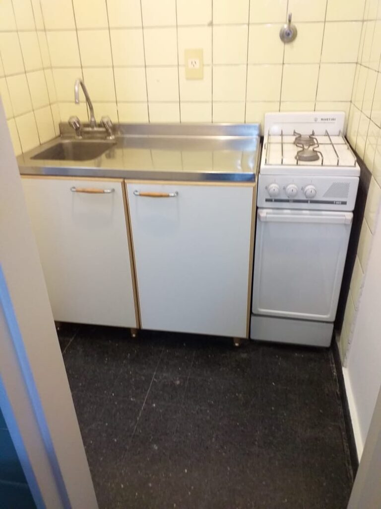 Cocina independiente con pisos y paredes de cerámicos. Cocina con 2 hornallas, bajo mesada de 2 puertas. Baño completo con sanitarios y bañera, botiquin con espejo. Pisos y paredes de cerámicos.