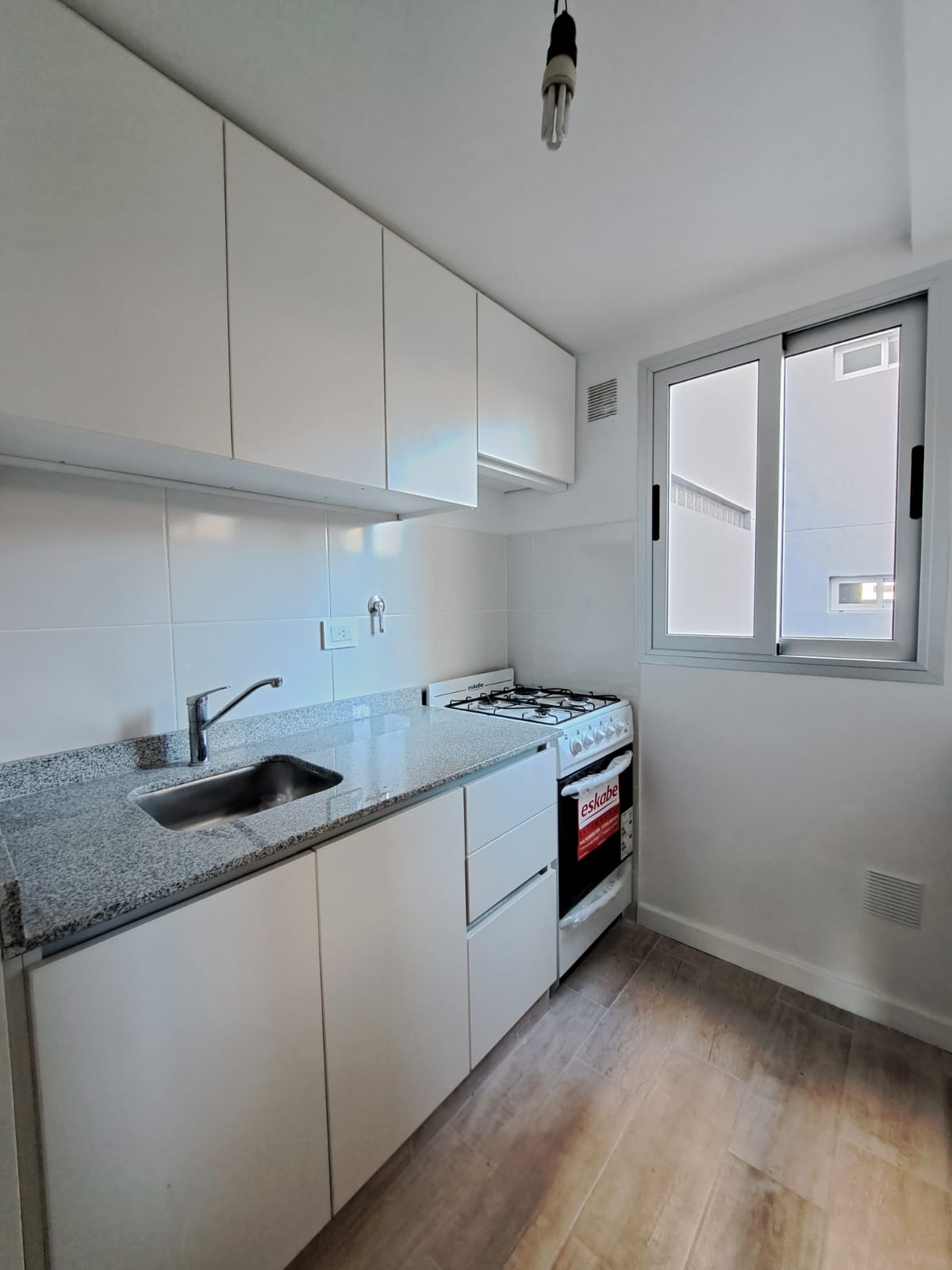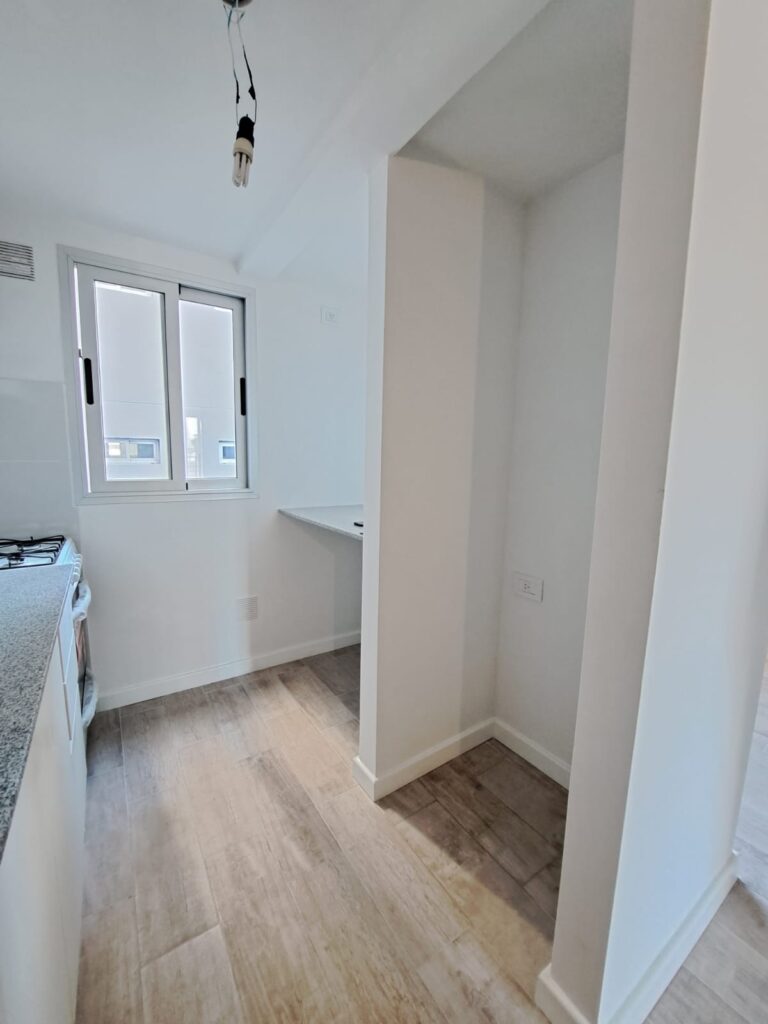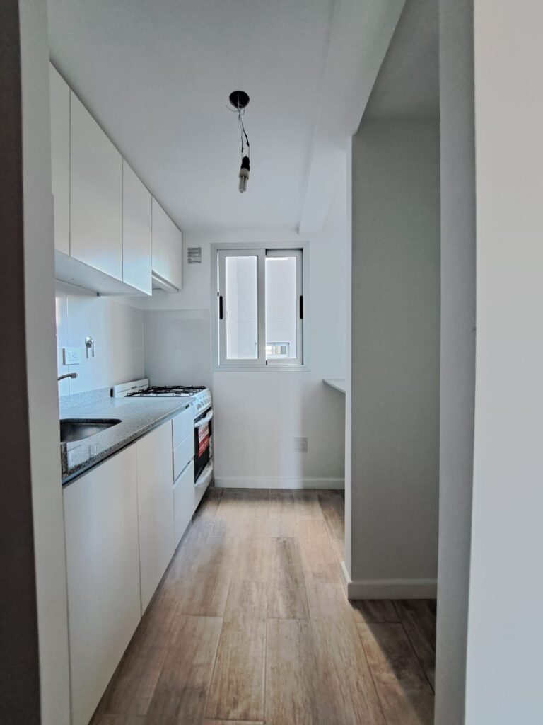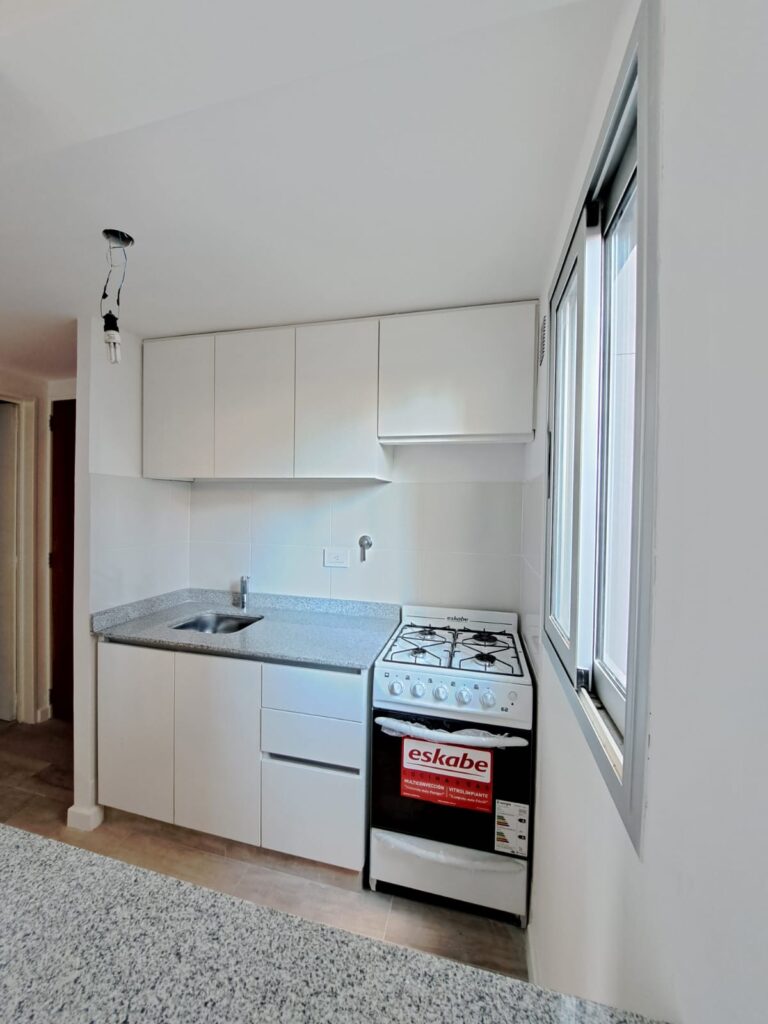 Cocina completa con mesada de granito, pisos de porcelanato, alacenas y bajo mesada, grifería monocomando, y bacha de aluminio. Conexión para lavaropas. Cocina a gas. Ventana al exterior, con gran ingreso de luz