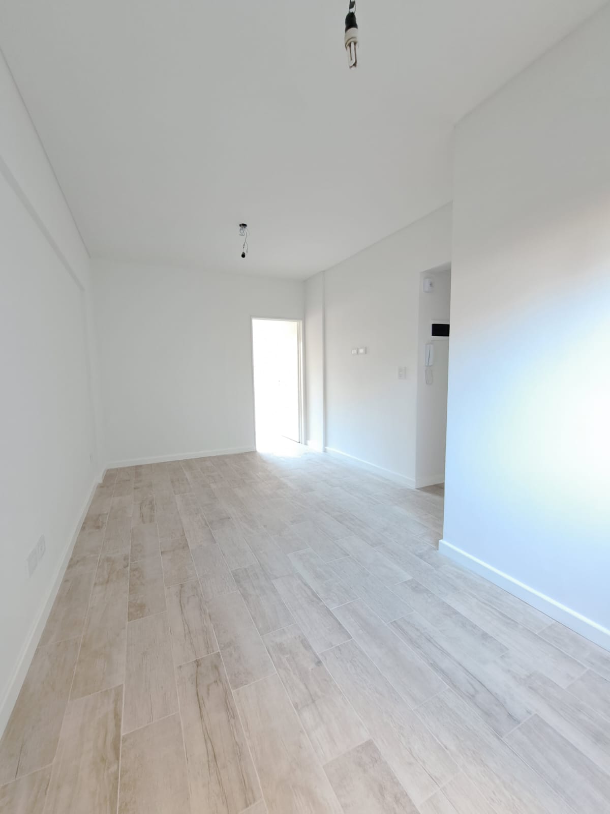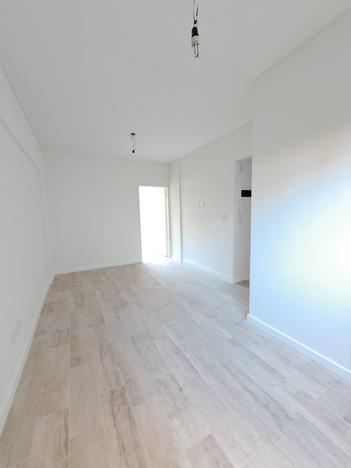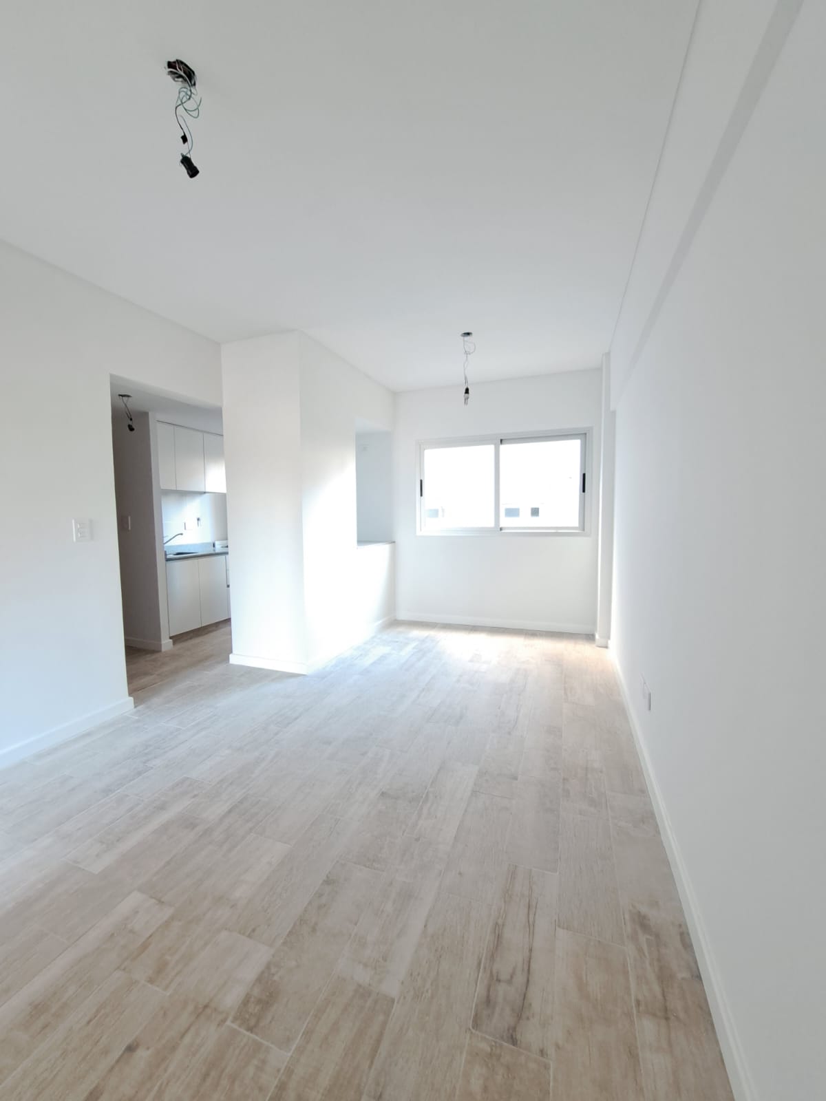 Cuenta con pequeño hall de entrada con acceso al living comedor con pisos de porcelanato y ventanal al exterior.