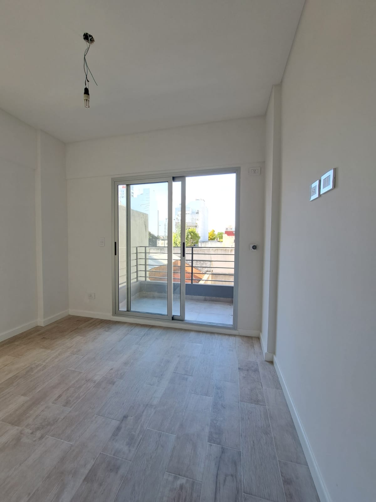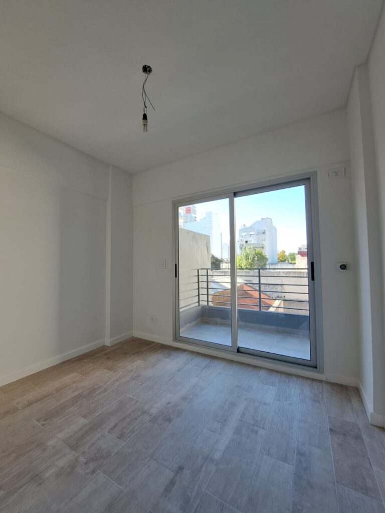 El dormitorio de excelentes dimensiones, con piso de porcelanato y ventanal con salida al balcón con vista al contrafrente. Placard de 2 puertas corredizas e interiores.