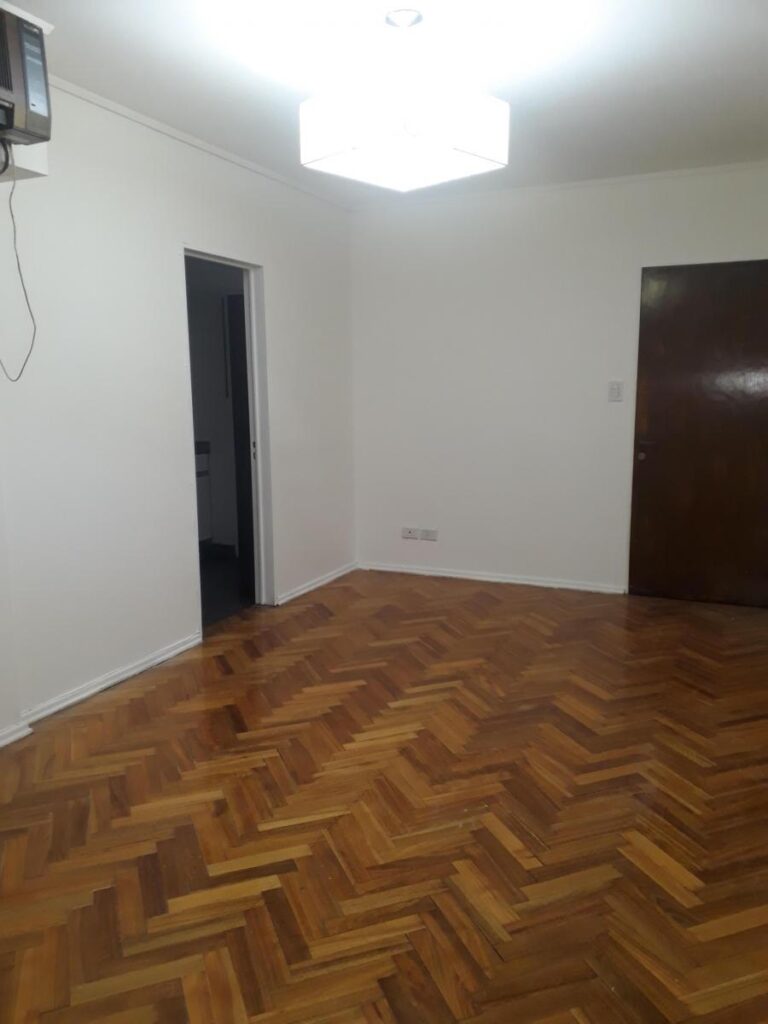 El departamento posee aire acondicionado en el living y ventilador de techo en la habitación. Todos los ambientes dan al exterior y poseen redes de protección en las ventanas. Pisos de parquet. Doble circulación, ingreso por la cocina y por el living. Servicios centrales de agua y calefacción. NO acepta mascotas