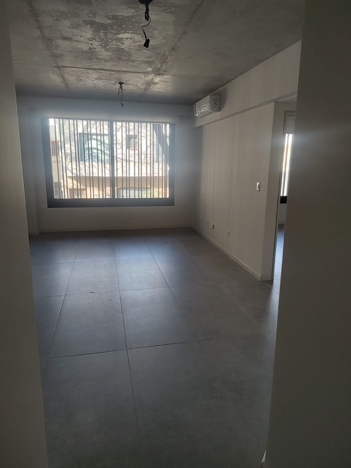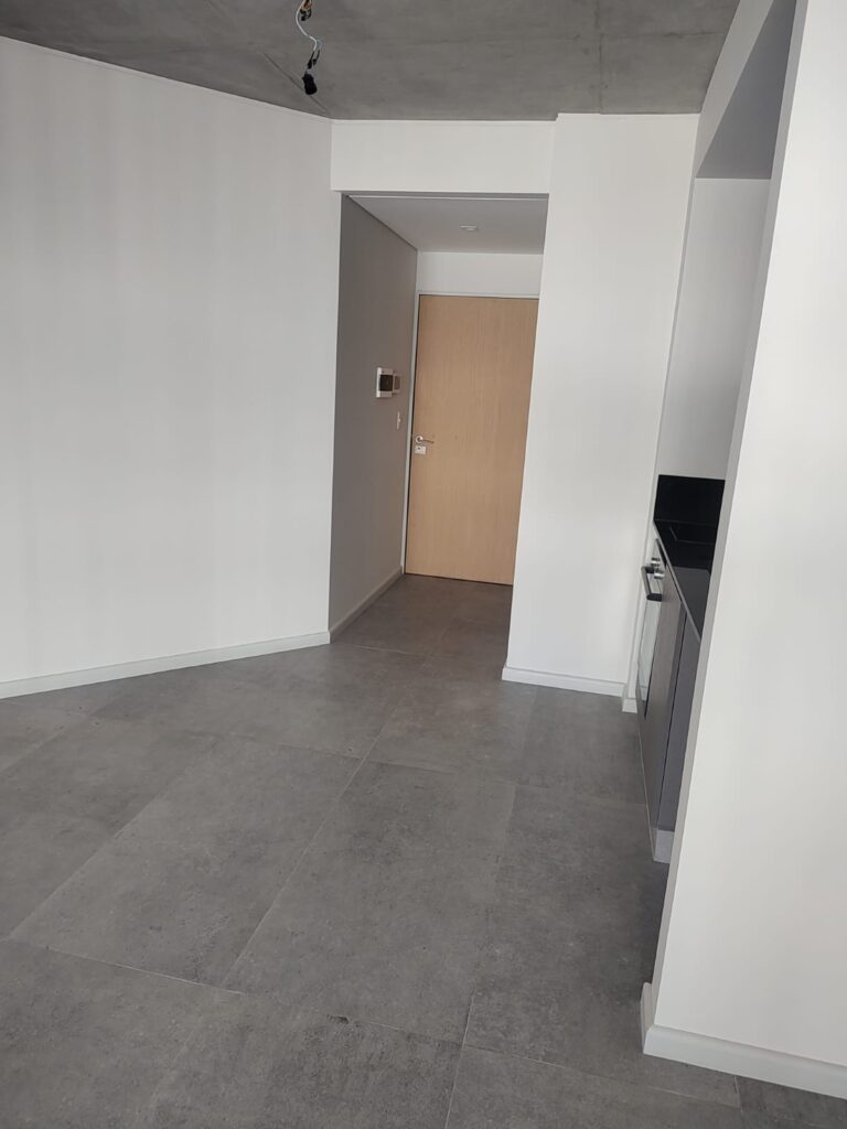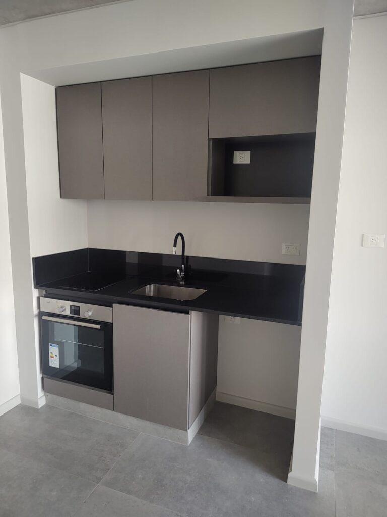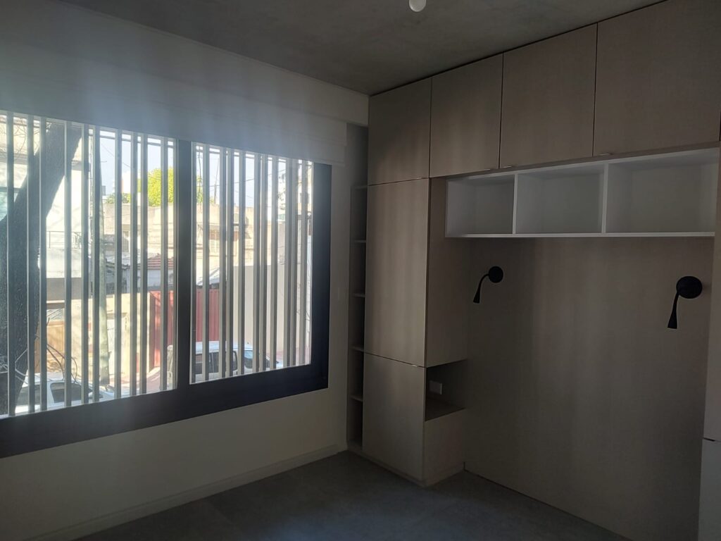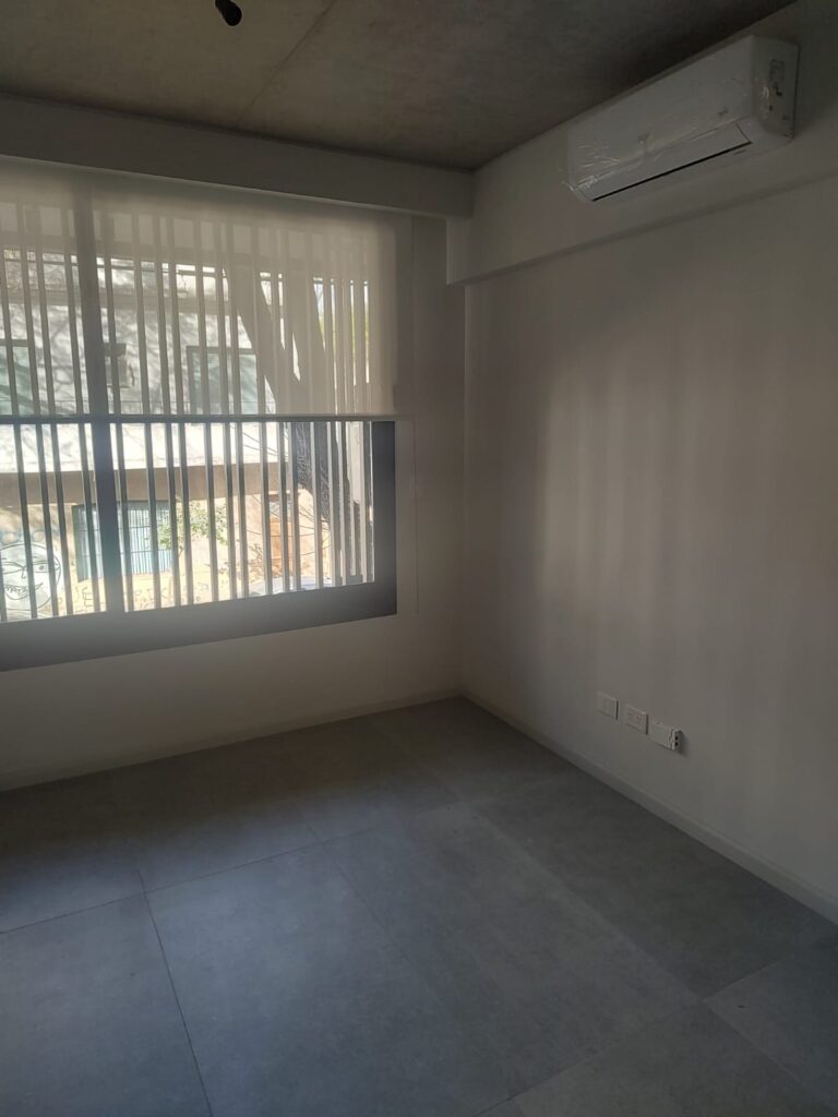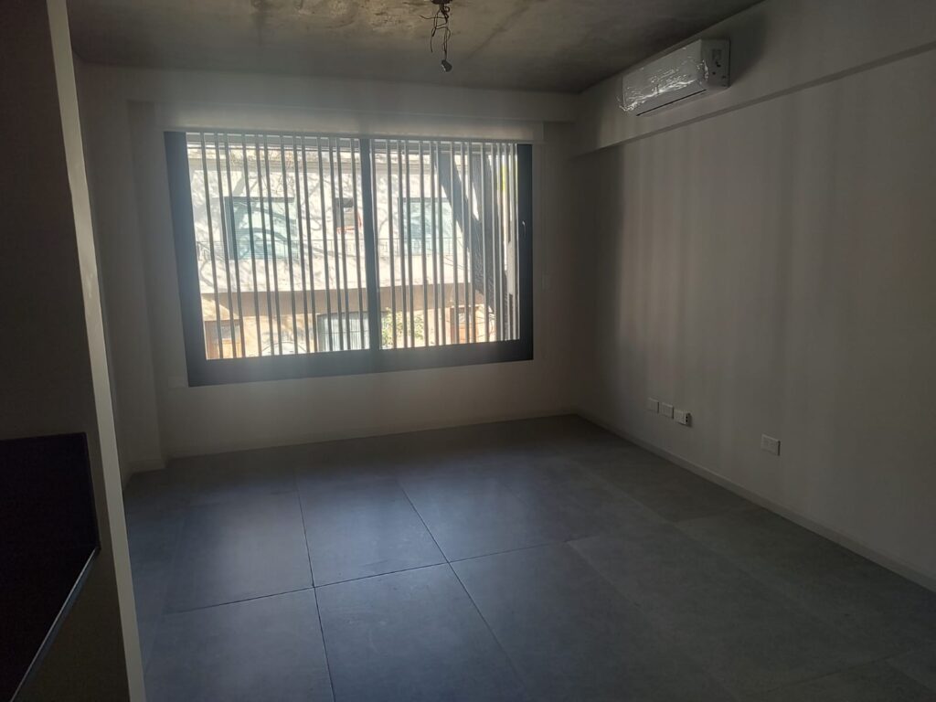 Cuenta con living comedor con cocina integrada, amplia ventana al exterior. Aire acondicionado