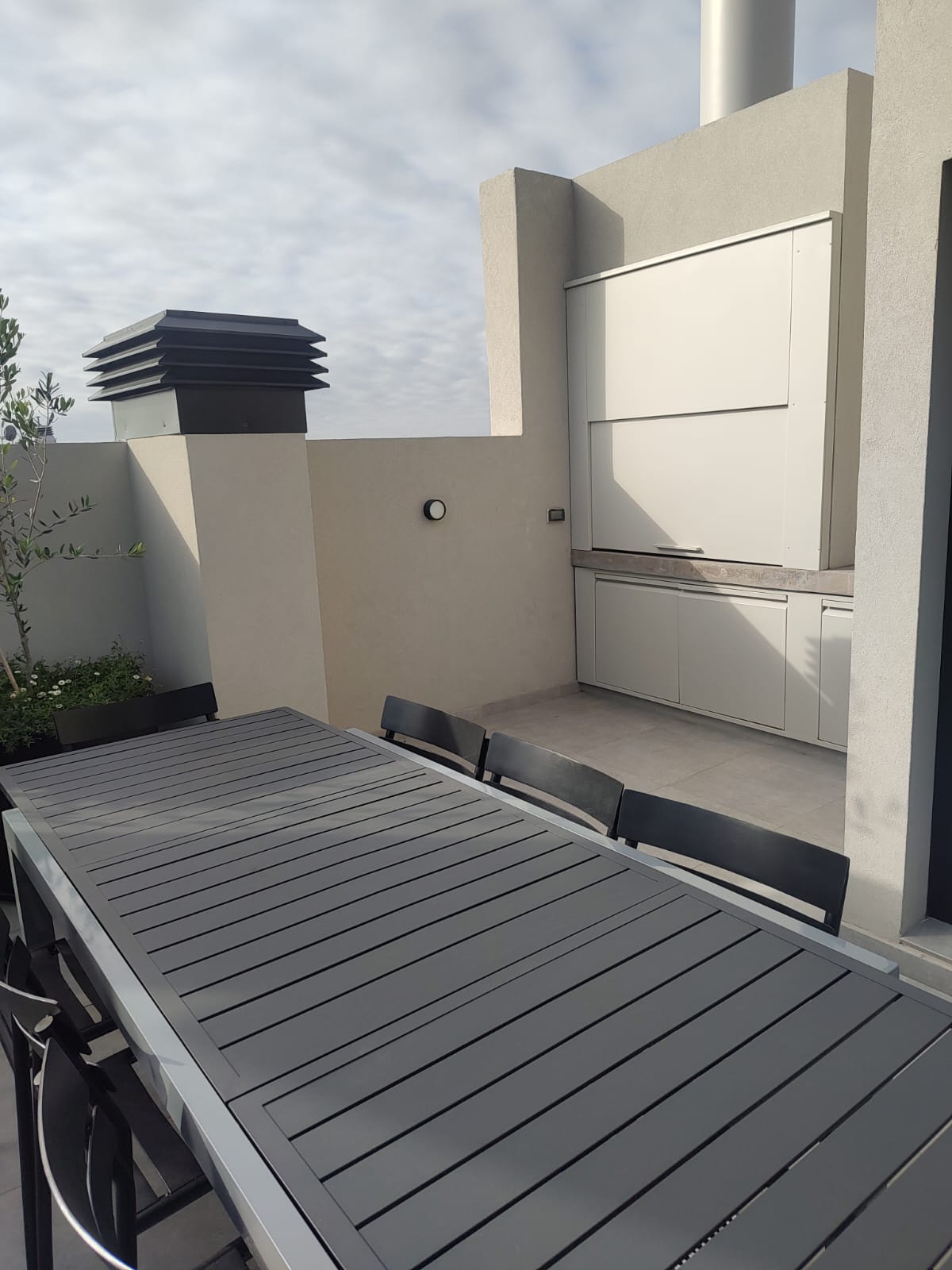 El departamento se encuentra cuenta con laundry y terreza de uso comun con mesa y sillas.