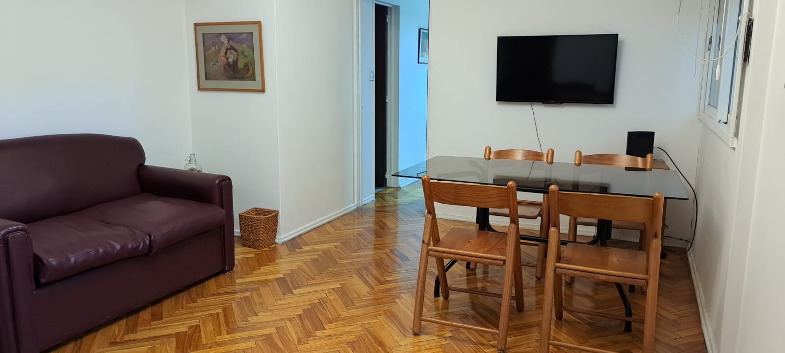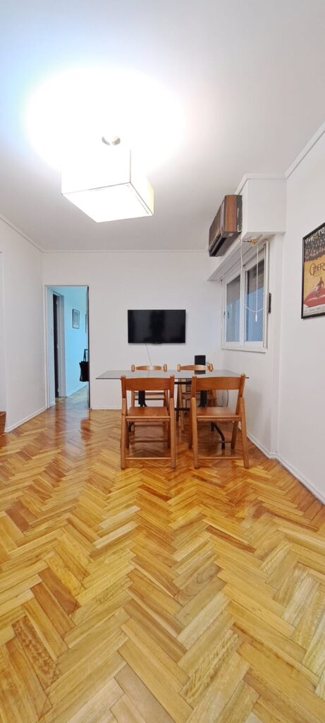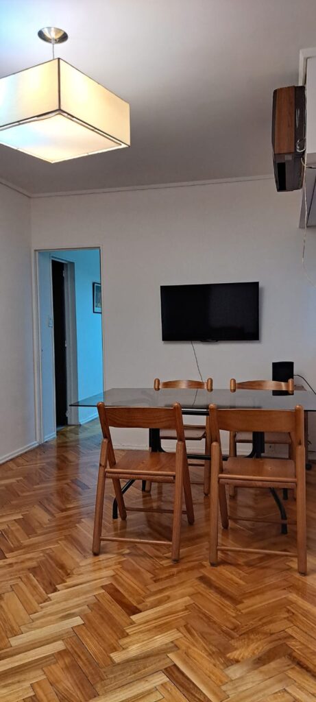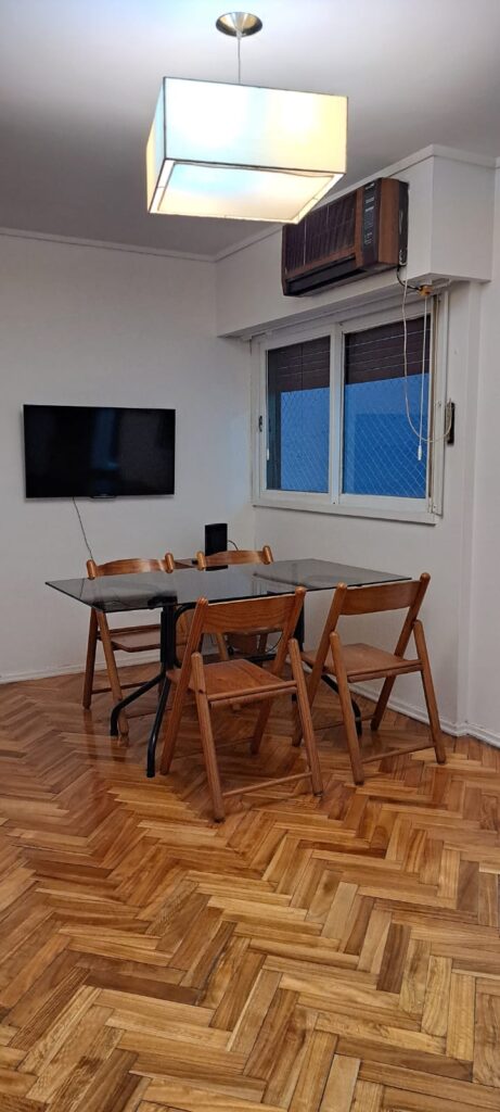 El departamento posee aire acondicionado en el living y ventilador de techo en la habitación. Todos los ambientes dan al exterior y poseen redes de protección en las ventanas. Pisos de parquet. Doble circulación, ingreso por la cocina y por el living. Servicios centrales de agua y calefacción.. Maximo 02 personas, no admite mascotas