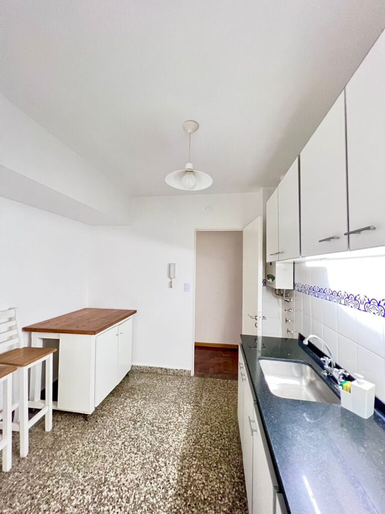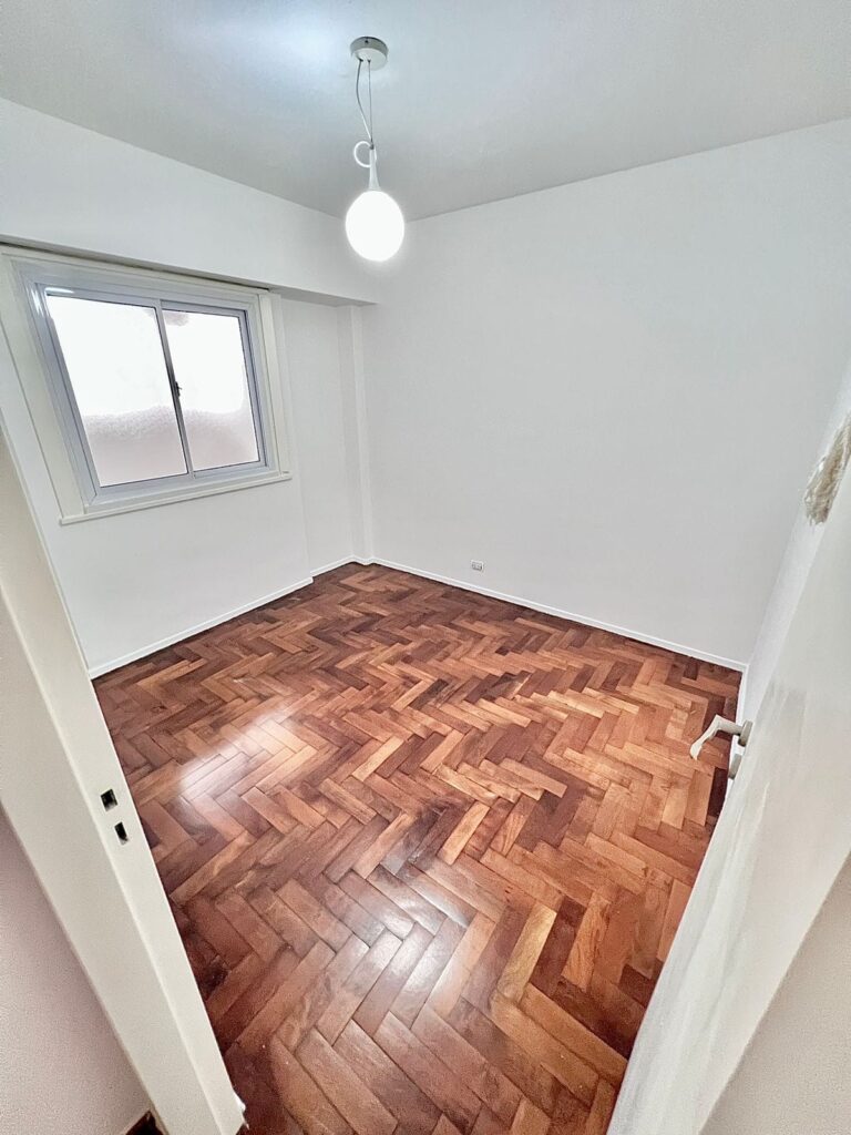 VENDIDO – Excelente departamento de 3 ambientes en segundo piso al frente por escalera, súper luminoso. Impecable estado, totalmente reciclado a nuevo. Cuenta con un pequeño hall de acceso, amplio living con salida al balcón, pasillo distribuidor hacia los dormitorios, baño completo reciclado con bañera, cocina completa con alacenas y bajo mesadas, y lavadero independiente reciclados, con ventilación externa, dos cómodas habitaciones, la principal con salida al balcón, amplio balcón corrido. Pallier semi privado