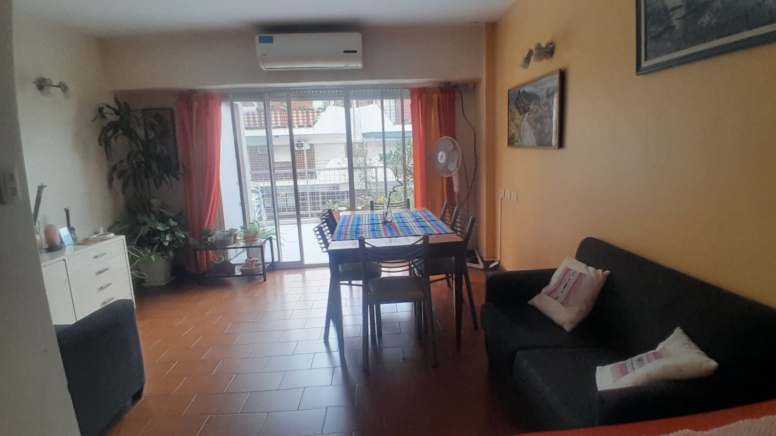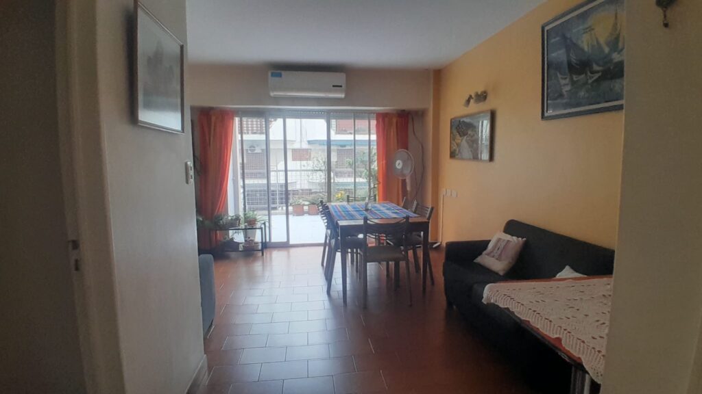Living comedor (medidas 6*4 m2) al frente con aire acondicionado y persiana eléctrica con salida al balcón aterrazado.