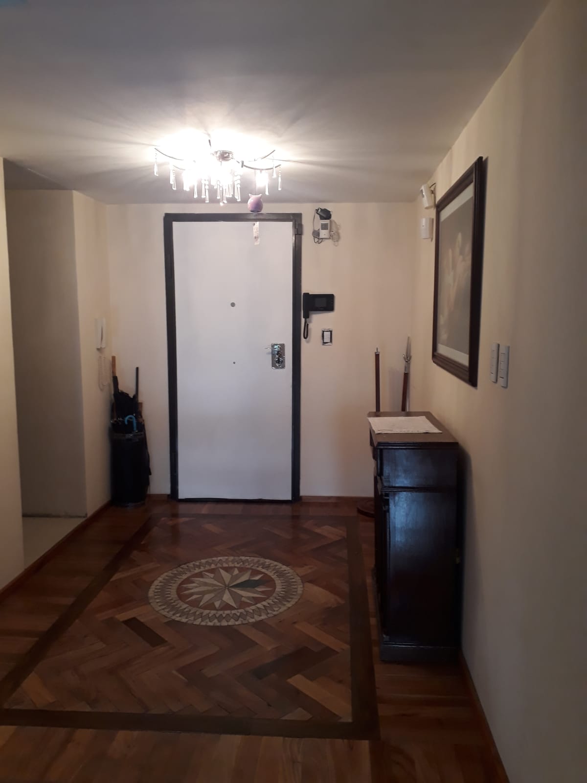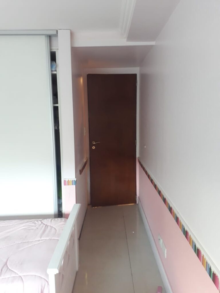 Pequeño hall recibidor y pasillo de distribución a las habitaciones con placeres y lugares de guardado.
