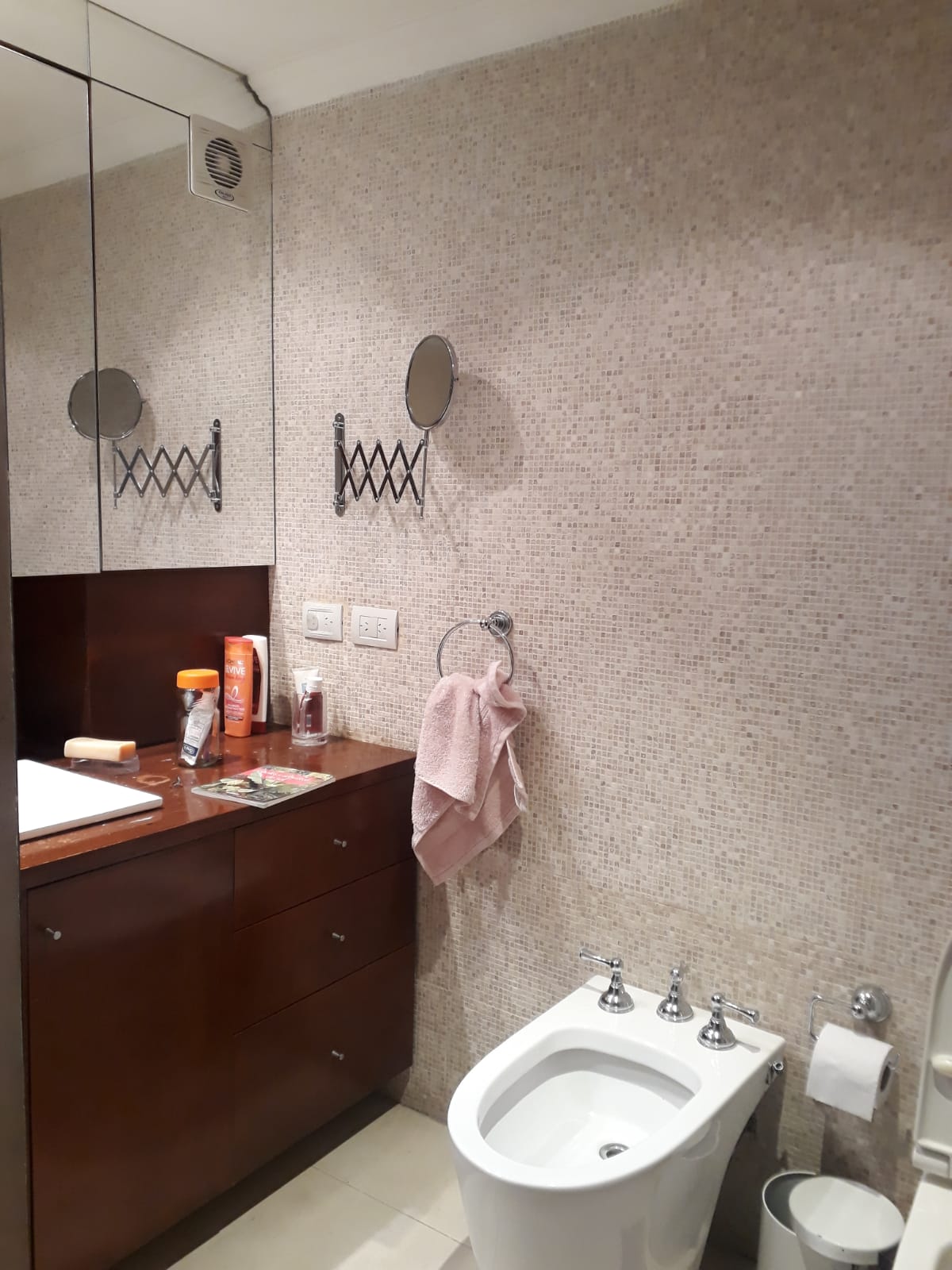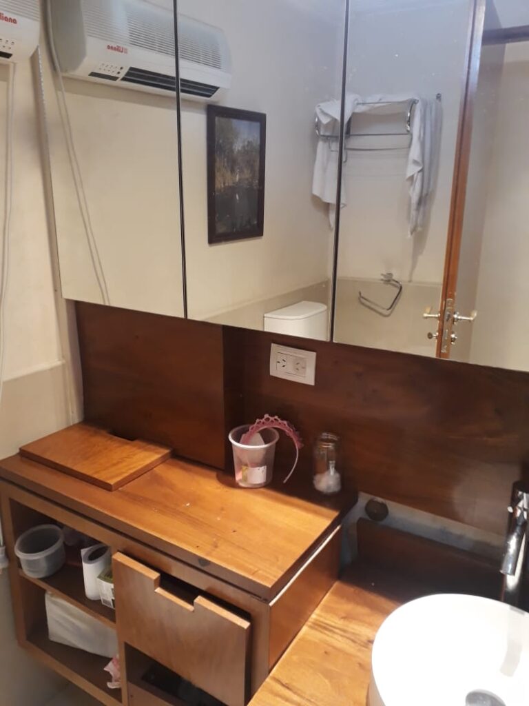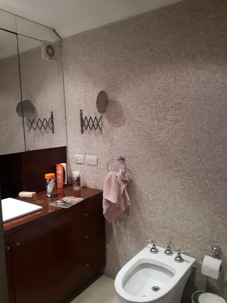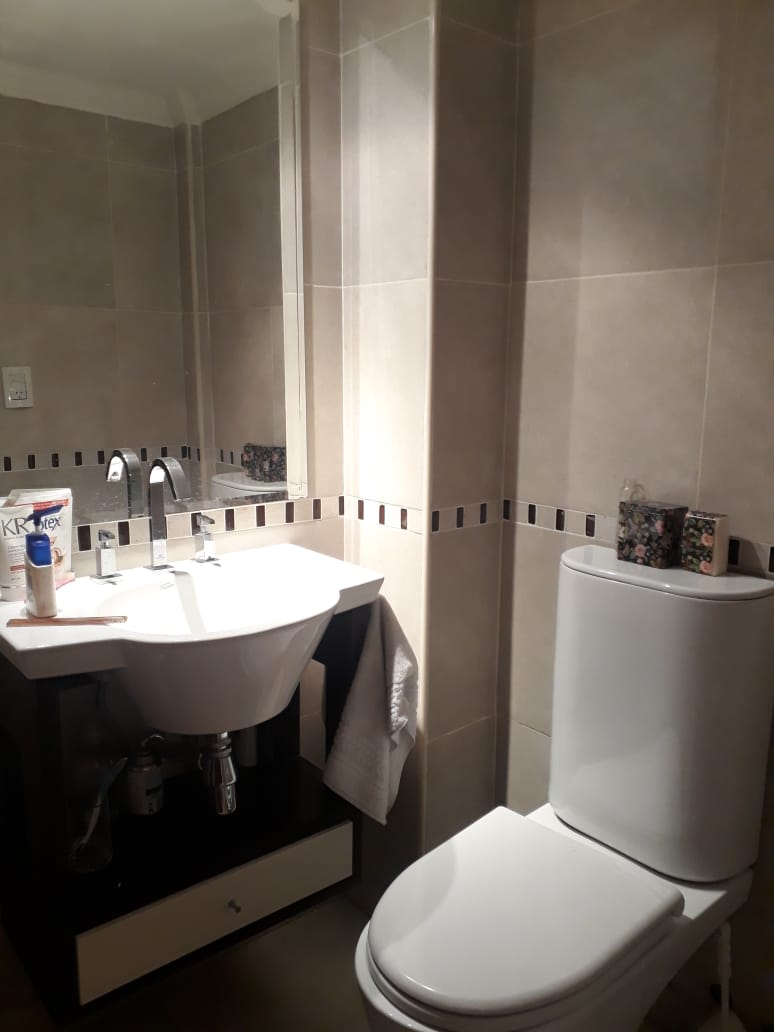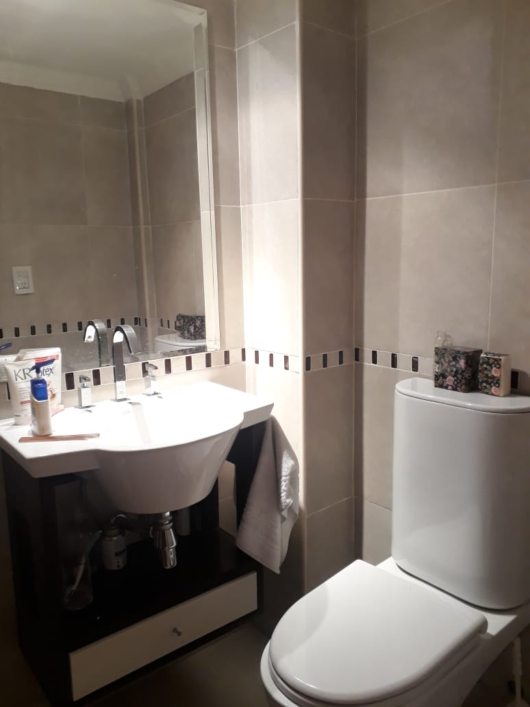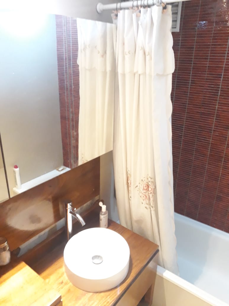 Baño completo con modernas terminaciones reciclado, vanitory, bañadera y ventilación externa.