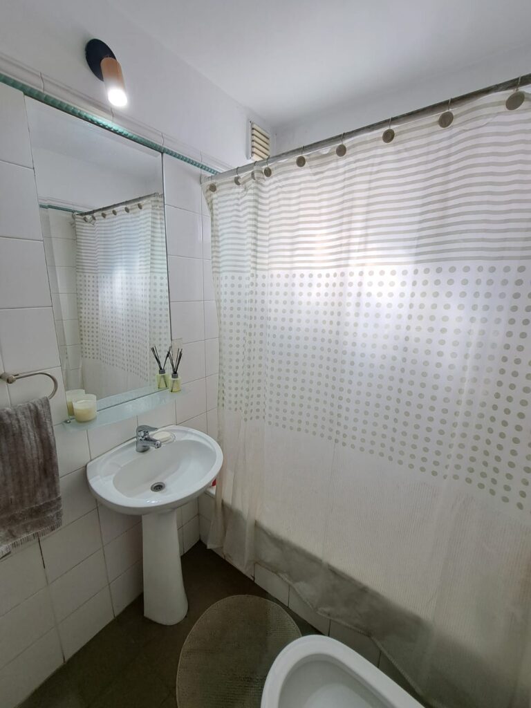 Baño completo con lavatorio, bañadera, sanitarios, y accesorios, con ventilación al exterior