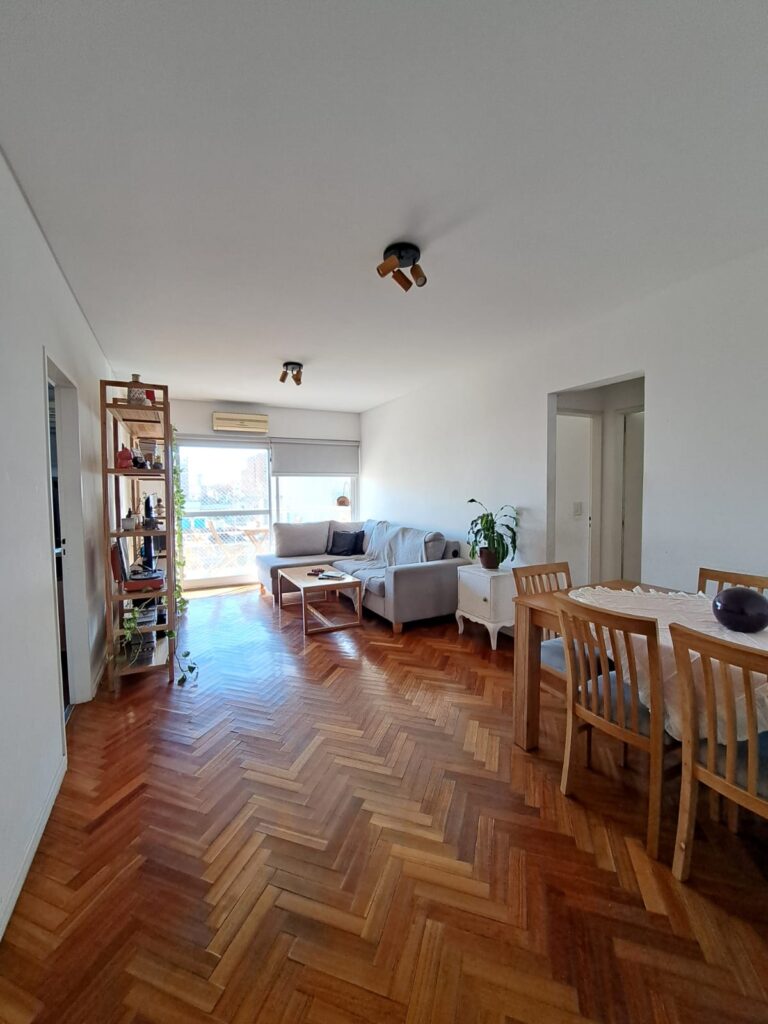 Cuenta con amplio living comedor con pisos de parquet y con salida al balcón corrido.