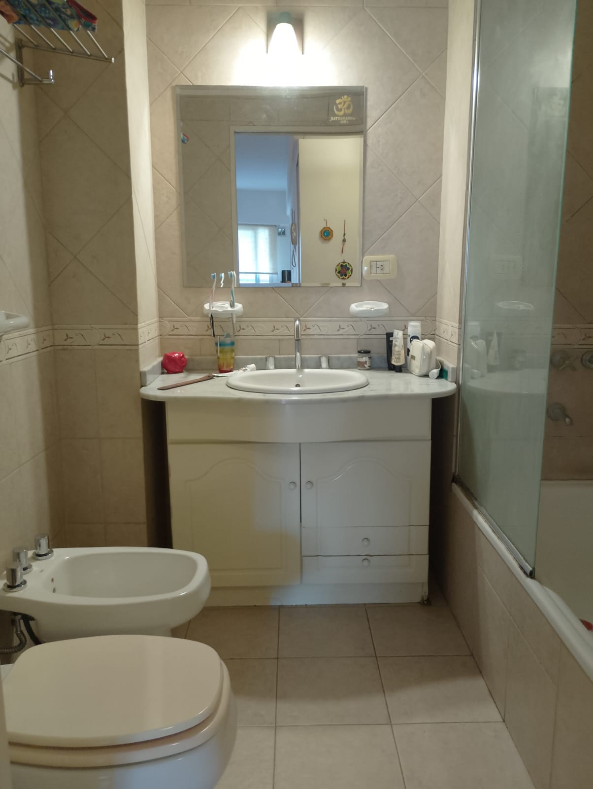 *Baño completo con vanitory y bañadera con mampara blindex . Grifería monocomando