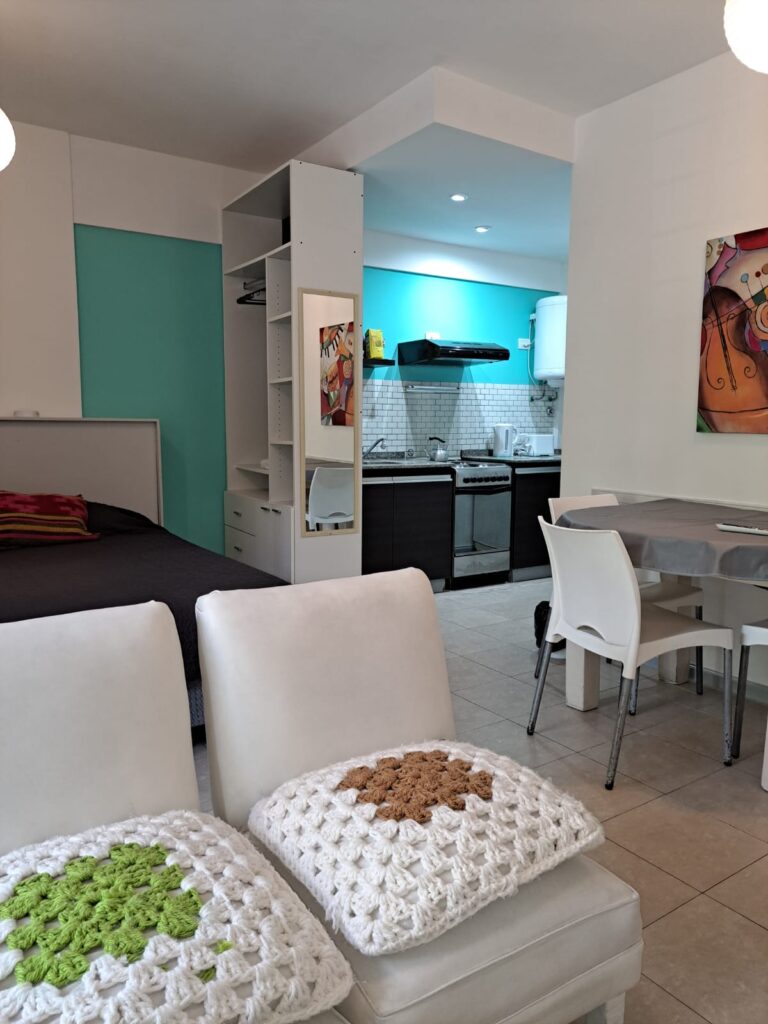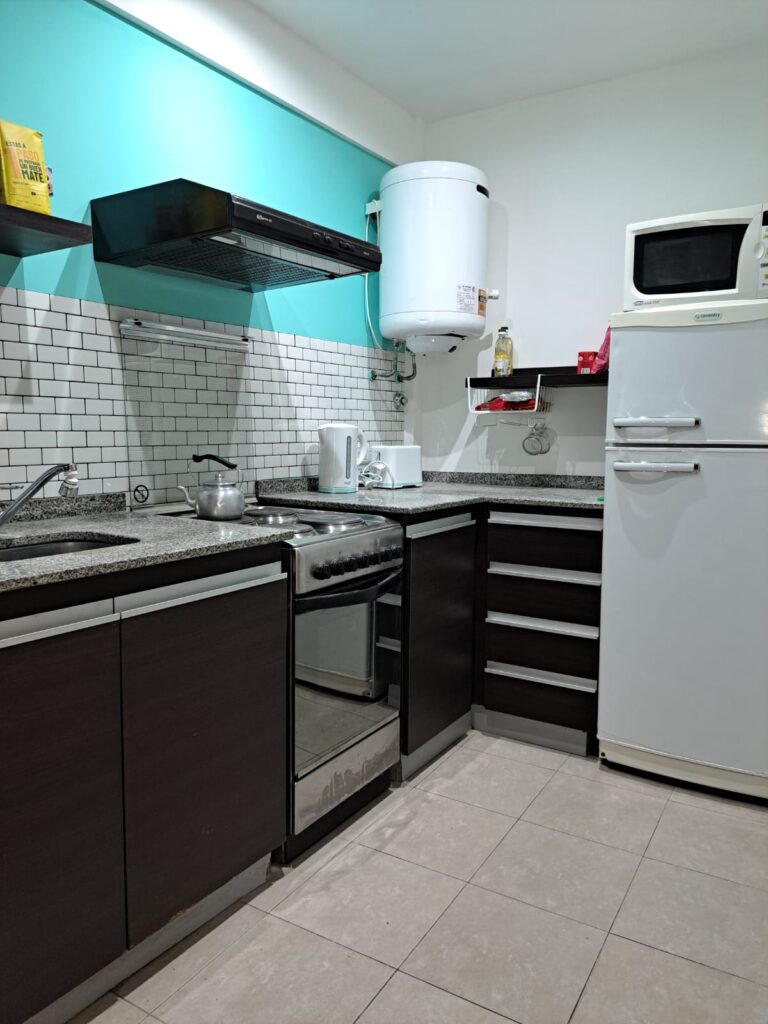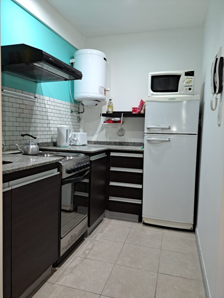 *Cocina con bajo mesada y horno electrico. Heladera con freezer, microndas, pava eléctrica, cafetera, tostadora, vajilla y utensilios para 2 pasajeros.